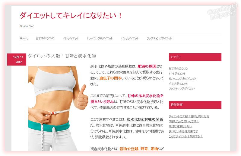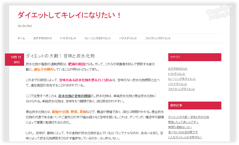 例えば、あなたがダイエットしたいと思っている女性だっと仮定しましょう。ネット検索で「ダイエットの方法」で調べて、出てきたリンクをクリックして開いて見たとします。それがもし下のような文章だけのサイトだったら、パッと見た第一印象はどう思われますか?・・