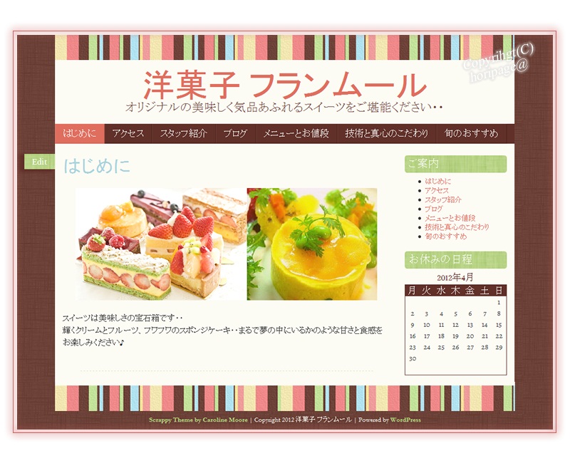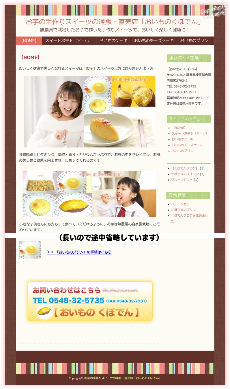 ↓こちらは別のお客様で、手作りスイーツのお店のホームページです。