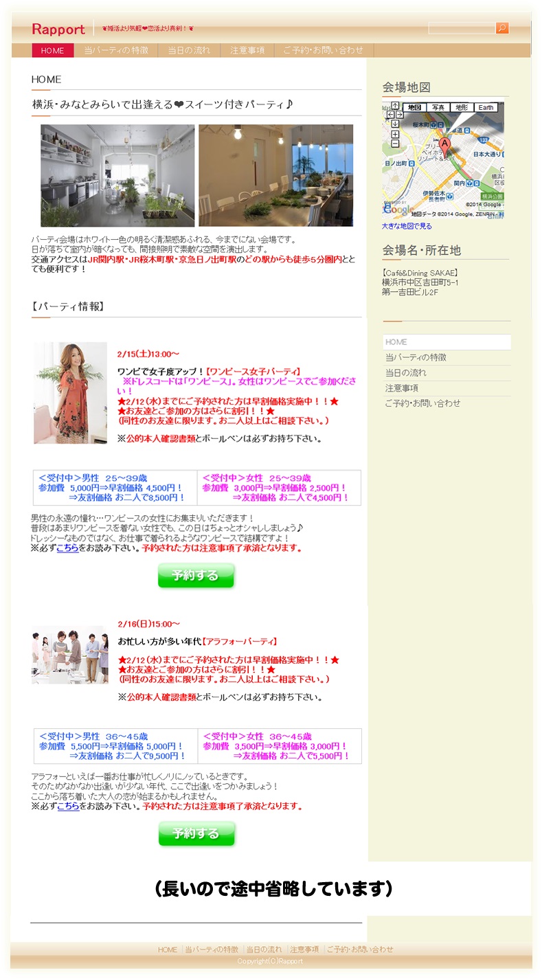 ↓こちらも別のお客様で、社会人向けパーティ・イベント運営会社様のホームページです。