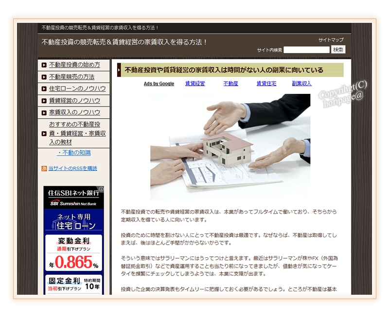 ホームページやブログを持ち、そこで商品を売ったり広告を貼って収入を得るということは、果樹園などの農業や、賃貸経営の不動産投資と似ています。