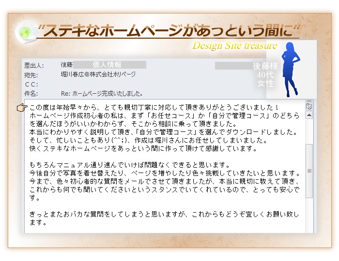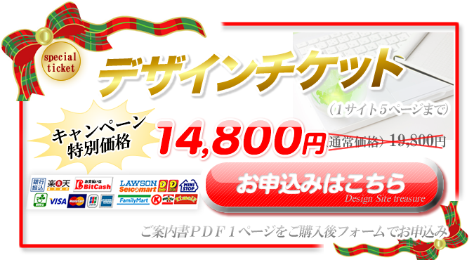 ただし、部分的なアフターフォローは無料で致しますが、「アレもコレも・・最初から全部やってほしい・・」という方には「デザインチケット」をおすすめしております。