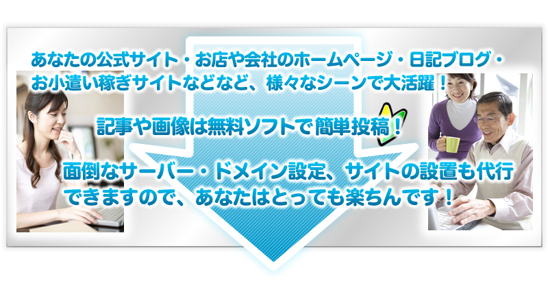 このサイトでは、無料のサイト作成ソフトを使って、あなたのお店や会社の公式サイト、趣味・お小遣い稼ぎのブログなどを簡単に作ってしまう方法を解説しています。